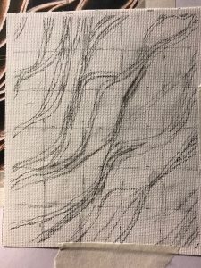 Sketches for paintings 1 and 5. These are the smallest of the paintings for this project at 5 x6″. I suspect they will take the least amount of time. I’m currently in a funk of not wanting to paint. So, I’m hoping these smaller paintings can help me get to the root of my question for this project, How do you get lost, (in process)?