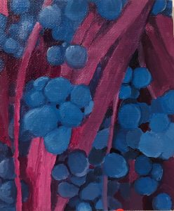 The staph infection i under painted with a Quinacridone Violet and then went square by square until I had it the way I wanted it. I like the depth I created in the muscle by using different values of the quinacridone violet and the thalo blue. I enjoyed the repetitive limited color palette and the dept this painting took but haven’t yet gotten lost unless you count 4 hours spent painting it. It really felt like no time at all.