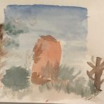Figuring out this word press site to fit exactly what I wanted was kind of hard. I found it soothing to paint just what color dominated a square of a grid of the space I was looking, and found it helpful to get at what color was in a space rather than what was actually there. For some reason my brain could do the upside down contour better than just drawing what I saw and its probably because I slowed down and actually concentrated on how far apart like the nose and the mouth were. It actually ended up better than my first blind contour. I found these exercises very beneficial to getting back into painting. I had felt like I had stagnated in my artistic practice like one our first readings said and it was really the cure for that. I look forward to doing more of this in the future.