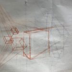 When I was cleaning off my palette to make room for a color mixing chart this Monday, I happened to love the way it looked and snapped a photo. The perspective drawing really gave me trouble this week. I’ve done perspective in the past and with how tall I am my horizon line made the vanishing points mostly go off the page. At a certain point with the smaller boxes I eventually just started to wing it. They actually started to look better after I stopped trying to draw what I was actually seeing. We then started to grid out a still life in pencil and then paint the three shades of grey or white the subject was. This is going to be used later for a glazing exercise but in order to get it right I had to take a black and white photo with my phone and stay after class for a bit. I’m pretty happy with how the proportions and colors came out and I’m glad I stayed to do more work on it. That’s it so far this week.