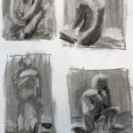 On Monday of week 5, we were in the art studio with a model whose name might have been Steve. Anyways, we did warm ups and finally got into oil painting. I chose to sit on a horse and was stiff and uncomfortable by the end of the three hour session. Because I chose to sit so low the final blue and green painting was at a weird angle and I really had to rely on my original thumb nail sketch to make sure the foreshortening was correct. I’ll definatly keep it in mind for later.