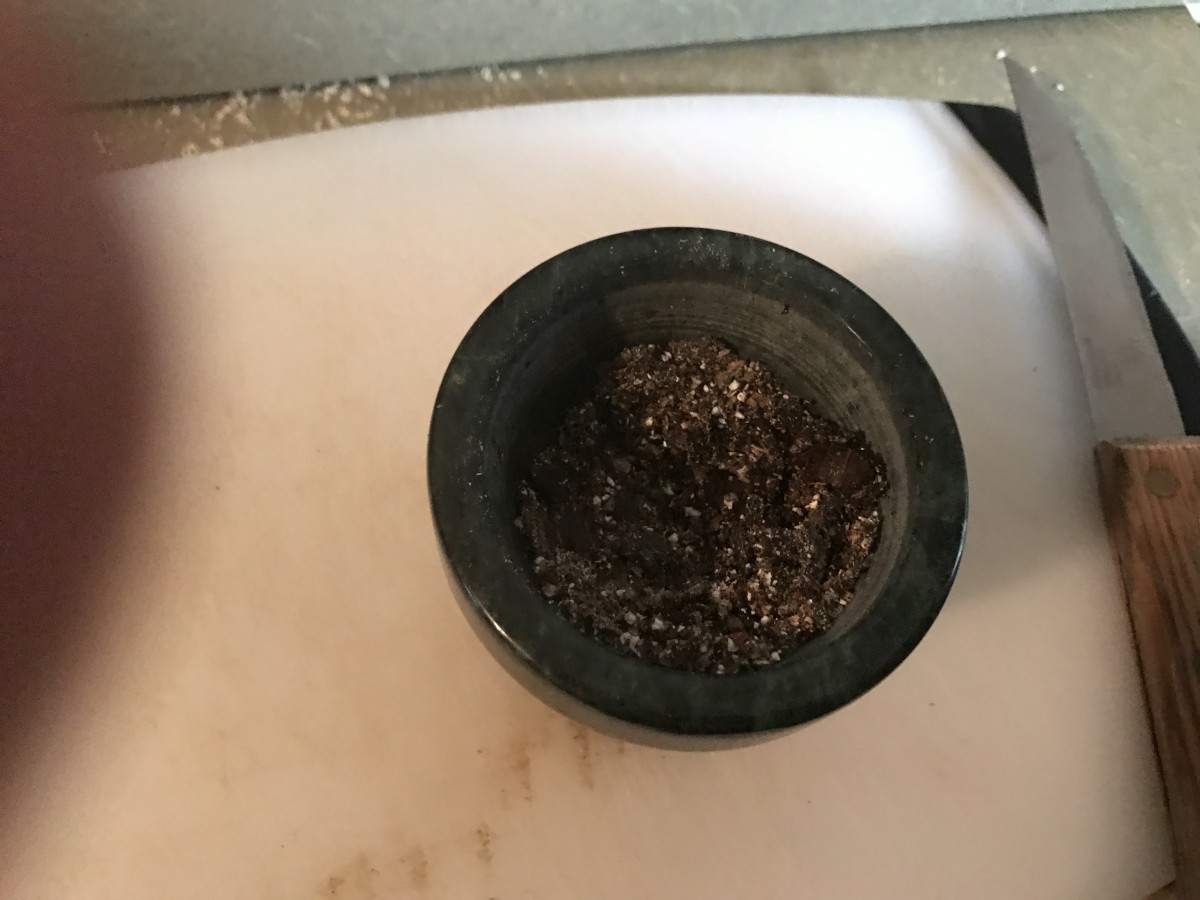 Crushed cardamom, seeds of paradise, and vanilla beans