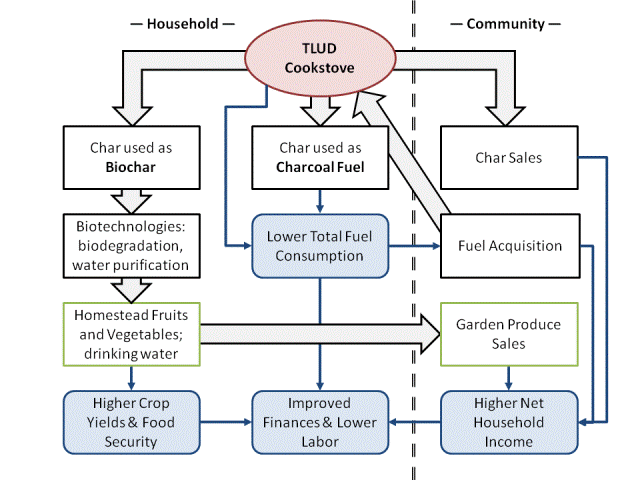 For households, the advantages of the Akha are being able to cook efficiently, smoke-free, and make char. The Akha can operate unattended. As mentioned above, char production is a major benefit, because it will maximize the use of the wood, and is a keystone product for other household enterprises involving charcoal and biochar. By making char, the household can save money, and/or generate revenue. The main disadvantages of the Akha are (1) having to prepare small pieces of dry wood, (2) having to reload fuel for long jobs, and (3) having to learn how to use a TLUD properly, because if gas fire goes out, there will be a lot of smoke. However, learning to use the Akha is not difficult, and the benefits will outweigh the limitations. Recently, the Akha was evaluated by households in Manikganj, Naogaon and Dinajpur. The women who tested the Akha greeted it with enthusiasm. Improved models of the Akha are being developed based on household reviews and scientific testing.