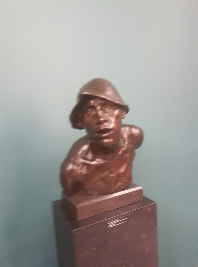 Of course I was struck by you. I’m struck by all of you. You’re on a pedestal so that I look right at you. Right in the eyes. Normally I look at you from above. What would it be like to look at you from below? Someone cared enough to make a bronze bust of you. And now you’re in a fancy museum in Berlin. What was your name? You had a story. You had a mother. Now you have furrowed brows and a mouth agape. You are dark and shiny. You’re handsome for a down-on-luck fellow. Of all the fancy paintings by Max Beckman the others (the ones mom really likes) I chose you. Your place in the arched thresh hold to the following room of fancy paintings left me no choice but to make contact with you. Why were you so close to the start of a massive fancy exhibit? Are you like Kafka’s Ape, being elevated in social status while forever bearing the stigma of a lowly Puddler?