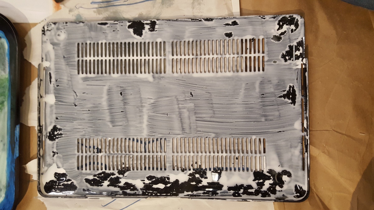 Here’s a progress shot for my next piece, I liked the texture that liquidy gesso gave to slick black surfaces so I’m doing that one more time here.