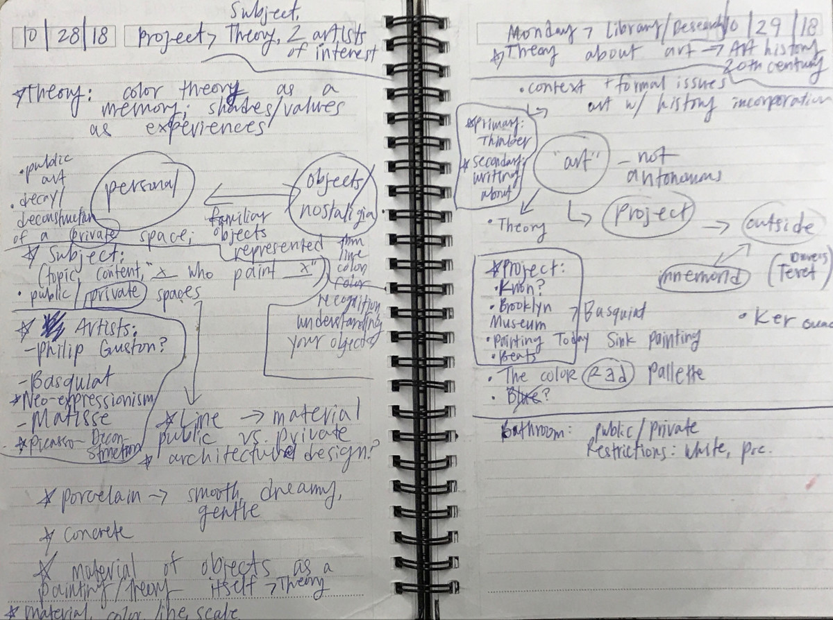 This week we read the chapter “Still Life and Life and Death” from Painting Today, Thierry de Duve’s “Nahum Tevet: Works on Glass” and Amy Sillman’s “On Color”. We watched a recording of Thierry de Duve’s ALS to deepen our understanding if his critique and prepare us for our ekphrastic essay. I enjoyed Duve’s text the most and started to learn the difference between subjectivity and objectivity present in the minimalism/post-minimalism art period and how Nahum Tevet pushed these boundaries and focused on objectness and a painting as merely as a painting regardless of medium and material. On Monday group one got to visit the woodshop where we built our wooden frames and learned how to use the various saws. I am familiar with saws and more labor intensive work and enjoyed this workshop! I made a couple of frames and got to take one home I made with a classmate. From this practice I learned the basics on how to create a frame for stretching canvas on.