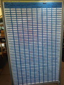 We leaned up the Harvest Chart. Using painter’s tape, we created equally spaced grids that will hold all information required for harvest and record keeping.
