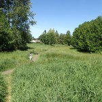 We tried a short cut to the meadow through some tall reeds and wound up in soggy, flooded mud, perhaps evidence of some of the aforementioned flooding that was previously hidden from view.